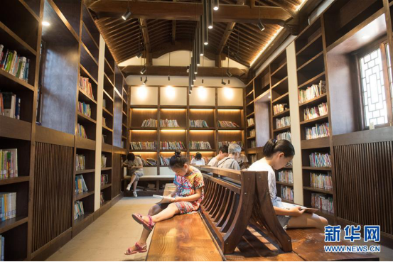 7月19日,读者在德清县乾元国学图书馆阅读。浙江省德清县积极推进乡镇特色图书馆建设,将闲置老建筑改造成设计独特、藏书丰富、活动多彩的图书馆。