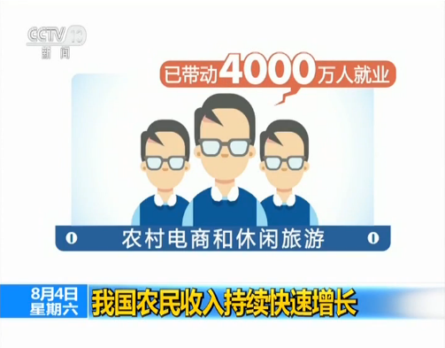 中央从制度安排上增加农民财产性收入的同时,还加快推进一二三产业融合发展,通过新产业新业态,促进农民工资性收入和经营性收入稳步增长。上半年,农民工资性收入增长9.5%,经营性收入增长6.1%。其中,农村电商和休闲旅游已经带动4000万人就业。