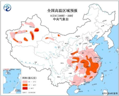 据中央气象台网站消息,中央气象台8月9日06时继续发布高温黄色预警:预计8月9日白天,陕西中南部、黄淮大部、江淮、江汉、四川盆地东北部、江南大部、华南中东部、甘肃西部及新疆南疆盆地和沿天山一带等地的最高气温有35~36℃。