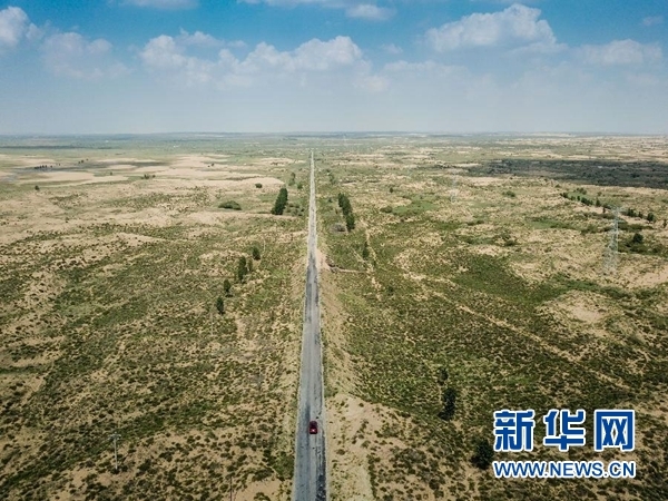 新华社呼和浩特8月8日电 题:库布其首条穿沙公路 矗立在大漠的无形丰碑