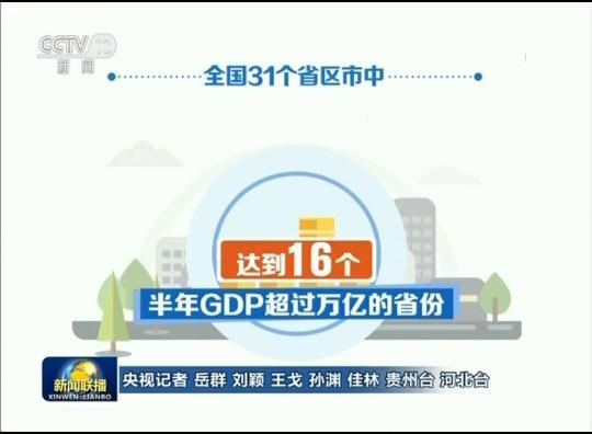 今年上半年,全国31个省区市中,半年GDP超过万亿的省份达到16个,比去年同期增加了两个。