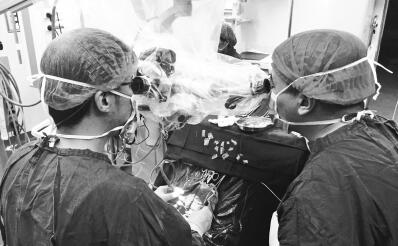 援藏医生与西藏那曲本地医生合作进行手术。新华社发