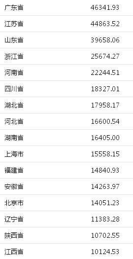 广东继续稳居第一,上半年GDP达到46341.93亿元;江苏紧随其后,上半年GDP达到44863.52亿元。这两省也是上半年“4万亿俱乐部”仅有的两位成员。