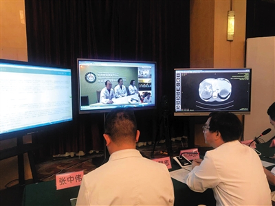 9月27日,四川大学华西医院,华西医院、甘孜州人民医院、石渠县人民医院医生通过远程医疗平台对包虫病患者进行会诊。新京报记者 许雯 摄
