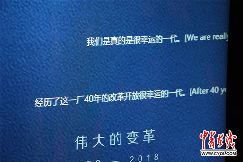 屏幕上,当日观众的留言随机呈现,短短几分钟内便“飘过”数十条“弹幕”。“看到了祖国的发展变化”“今天来看展览,收获很大”......留言区观众热情高涨,纷纷表达对改革开放40年中国日新月异发展的由衷赞叹。