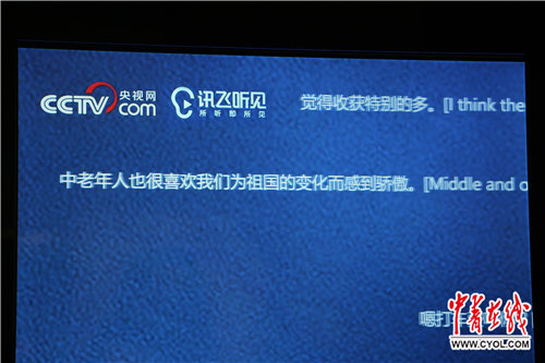 这是“伟大的变革——庆祝改革开放40周年大型展览”的观众留言区。不同于传统的手写留言,留言区采用语音识别系统,观众直接对话筒说话,系统将语音即时转换成中英文,一串串观众留言立即以“弹幕”形式在电子屏幕上滚动播出。