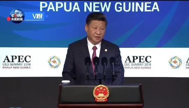 11月17日,巴布亚新几内亚首都莫尔兹比港。习近平主席在亚太经合组织工商领导人峰会上,以一个主旨演讲为世界把脉问诊、开出药方。