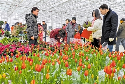 春节期间,安徽滁州南谯区花鸟鱼虫市场,市民在选购鲜花绿植。董 超摄 (中经视觉)