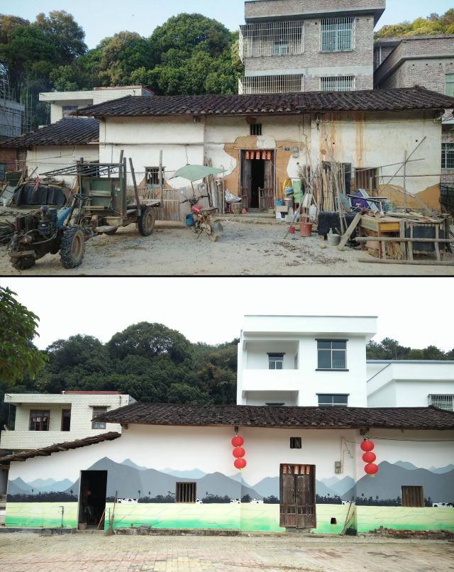 上图为清远市连樟村改造前的老房子,下图为2018年12月11日拍摄清远市连樟村改造后房屋新貌。新华社发