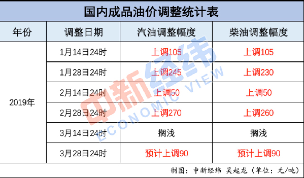 进入2019年,欧佩克(OPEC)开始落实减产计划,油价逐渐出现恢复性上涨,1月初国际油价曾创下近十年来最长的连涨纪录。截至目前,国内成品油价今年以来已连续上调四次、搁浅一次,汽油已累计上涨了670元/吨,柴油累计上涨了645元/吨。