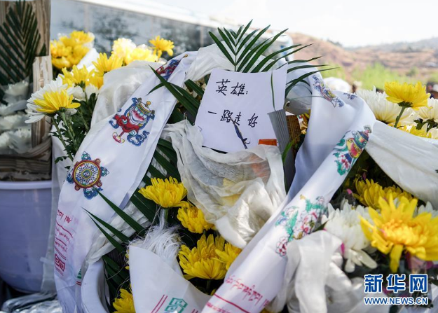 这是在西昌市殡仪馆为牺牲的扑火人员敬献的鲜花和哈达(4月2日摄)。新华社记者张超群 摄