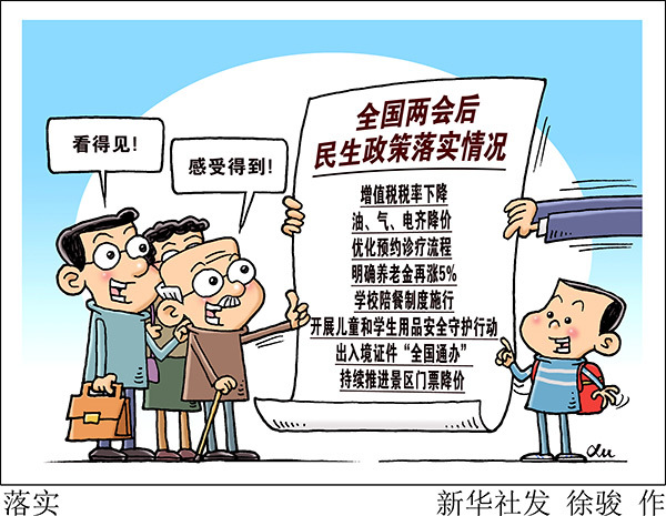 4月1日开始,增值税税率降低、油气电齐降价、学校陪餐制度施行、出入境证件“全国通办”……2019年全国两会闭幕之后,一系列看得见、感受得到的政策密集落地。“新华视点”记者采访各部委,追踪多项民生措施落实成效。