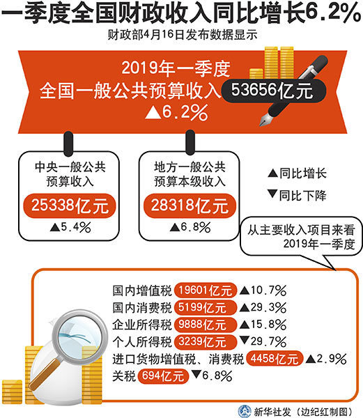 图表:一季度全国财政收入同比增长6.2% 新华社发 边纪红 制图