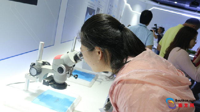采访团一行在三安光电体验最新信息技术产品。记者 梁惠敏 摄
