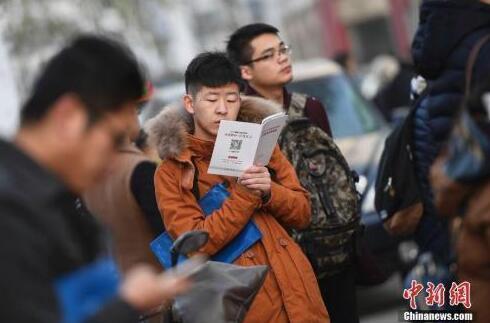 资料图:山西太原一公务员考点,考生排队准备进入考场。武俊杰 摄