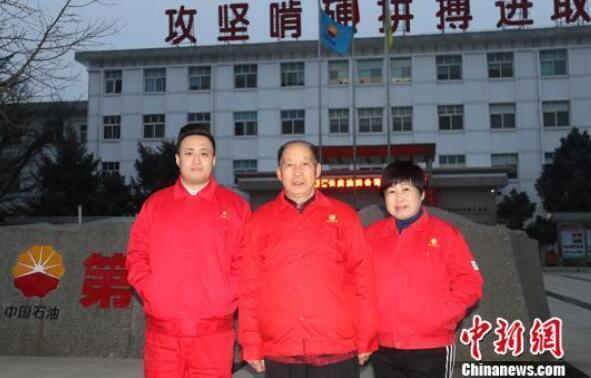 长庆油田三代人扎根西北,共同见证着油田的数载发展。(中:芮执甲 左:蔺鼎读 右:芮军红) 张鹏飞 摄