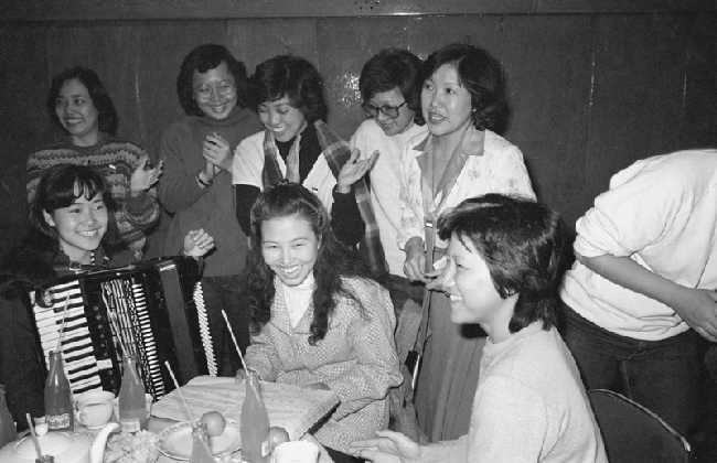 中、新两国演员联欢 1983年3月19日,新加坡佳音合唱团的演员同中国歌剧演员在北京民族文化宫举行联欢。这是两国演员在一起共唱中国歌曲《年轻的朋友来相会》。 新华社记者杨慎和摄