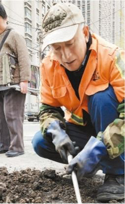 忙完手头的活,老苏立马赶去老人家,房前屋后地仔细检查,原来是老人家中排水井的污水出口被杂质堵死,楼内污水出不来,造成室内返水。二话没说,老苏一锹一锹地挖、一点一点地掏,将垃圾一一清理,解决了这个难题。