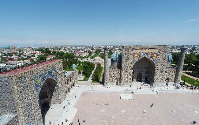 这是2017年5月拍摄的乌兹别克斯坦撒马尔罕市的列吉斯坦广场。新华社记者沙达提摄