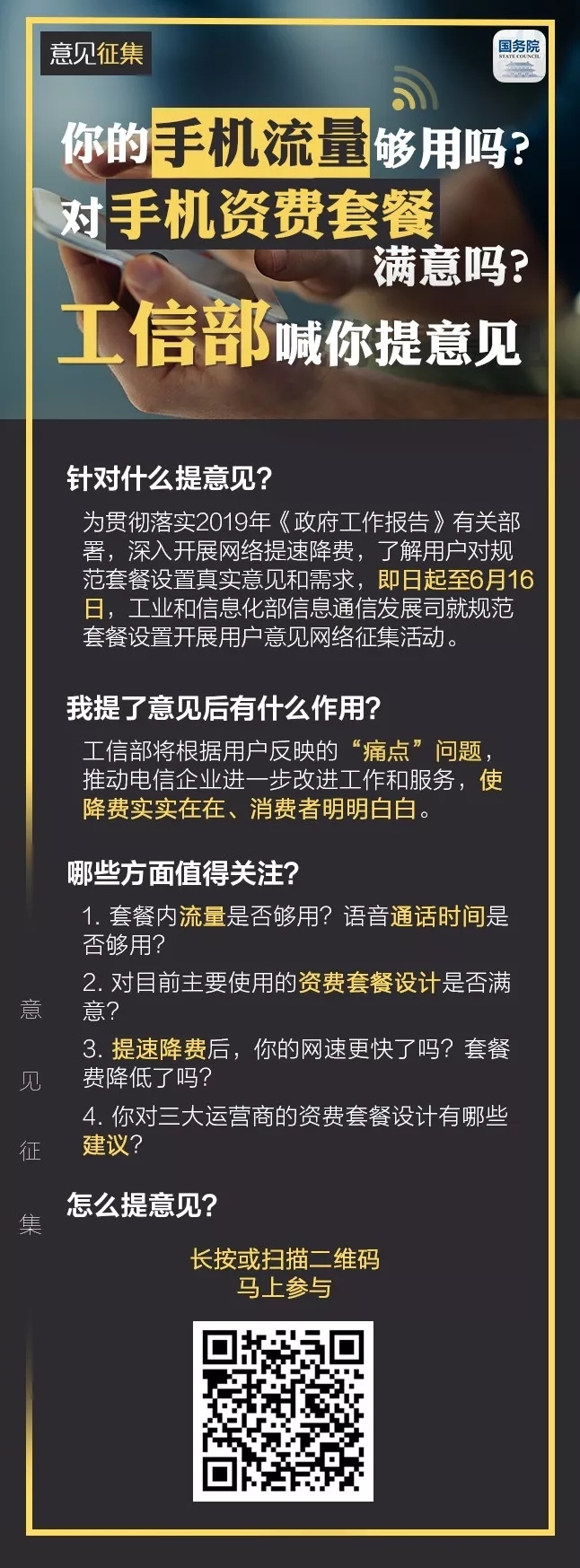 你的手机流量够用吗?对手机资费套餐满意吗?工信部喊你提意见