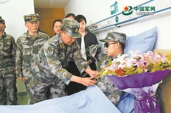 2018年11月24日,南部战区陆军云南扫雷大队在病房内为杜富国举行颁授一等功奖章和证书仪式。周贤军摄