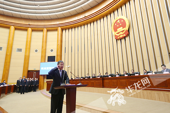 重庆市政府副市长熊雪在市五届常委会第十次会议上进行宪法宣誓。华龙网-新重庆客户端记者李裕锟 摄