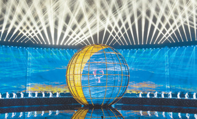 上合组织青岛峰会灯光焰火艺术表演《有朋自远方来》。