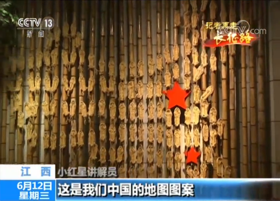 小红星讲解员:我们看到这个草鞋墙,这是我们中国的地图图案。