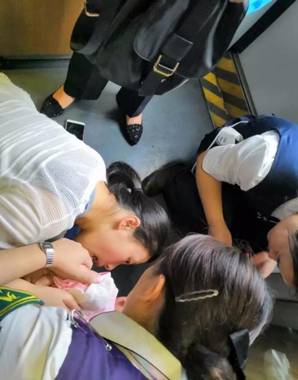 来到11号车厢后,金佳慧看到一名约1岁大的幼儿面色发白,已经窒息。情况紧急,条件有限,她立即将幼儿趴在自己腿上,运用海姆立克急救法进行施救。