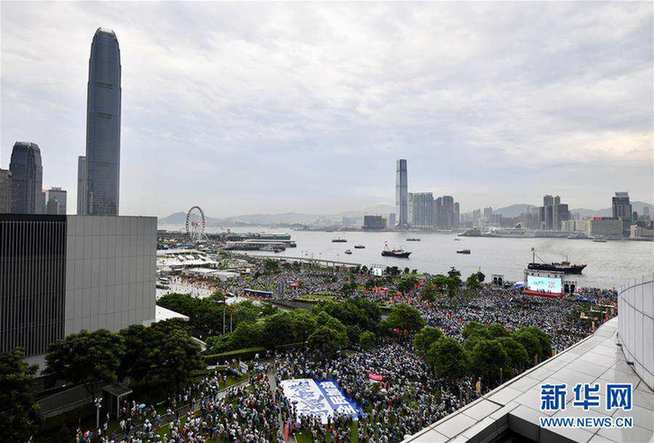7月20日拍摄的“守护香港”大型集会现场。 7月20日下午,香港各界举行“守护香港”大型集会,呼吁维护法治、反对暴力。大会主办方说,当天共有逾30万人参加活动。 新华社记者 吕小炜 摄