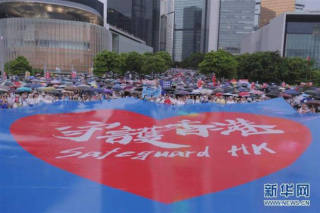 新华社香港7月20日电(记者王旭 刘明洋)20日下午,逾30万香港市民冒雨集会,以“反暴力、撑警队、护法治、保安宁”为诉求,举行“守护香港”大会,表达广大市民支持警方依法维护社会秩序、希望香港社会和平安定的心声。