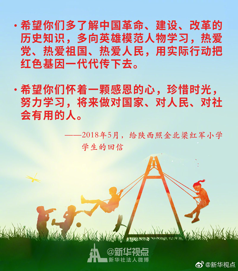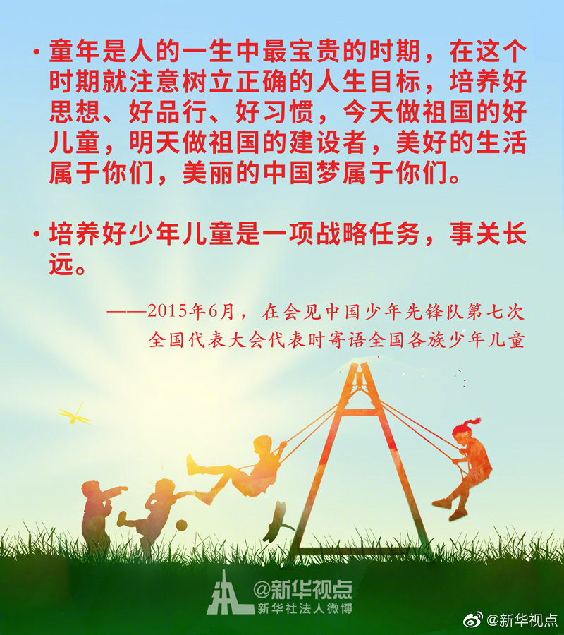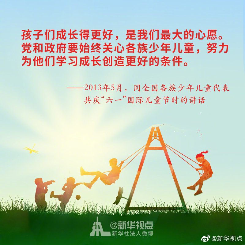 少年儿童是祖国的花朵,民族的希望。幼有所育,让每一名少年儿童都能伴随着时代的脚步茁壮成长,是全社会共同的心愿。习近平总书记始终关心少年儿童的身体健康和成长成才。党的十八大以来,习近平总书记这样说⬇