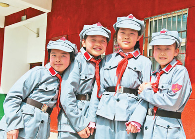 上午10时,一辆黄色校车缓缓驶入校园。30多个刚刚在照金镇表演完节目的“小红军”叽叽喳喳地从车里跳下来。杜晨燕小朋友是文艺活动主力,唱红歌、跳舞、演情景剧,她样样拿手。快言快语的杜晨燕告诉记者:“我们都有两套校服,一套是运动服,一套是红军服,我喜欢文艺演出,也爱穿红军服。”