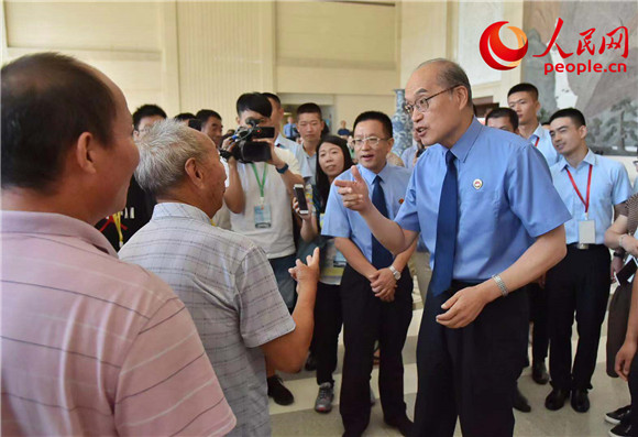 欢迎致辞后,张军走到第一场活动参观者中间交流。参观者中有好几位中小学生,张军了解到他们来自广东深圳、山东临沂、黑龙江;有专程赶来的,也有的是在假期游玩期间幸运地中签走进了最高检。张军希望他们好好学习,争取以后当上检察官,进入最高检。在与两位80多岁老人交谈时,张军嘱咐最高检工作人员和老人的随行家属照顾好老人。