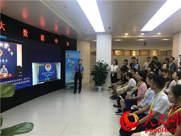 国家检察大数据中心也是这次参观“打卡”的热门地点。检察官用远程视频技术连线了浙江省嘉兴市嘉善县检察院,向参观群众展现检察机关如何远程办案。在这里,参观群众尽览检察“黑科技”,还了解了智能语音辅助等技术,切身体会到了“向科技要检力、向信息化要战斗力”的科技创新理念。