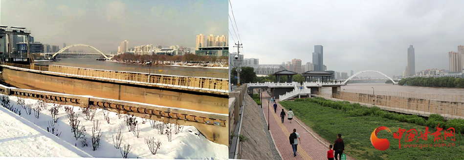 治理前(图左)后(图右)的兰铁泵站。(拼版图片)中国甘肃网记者 任磊 摄
