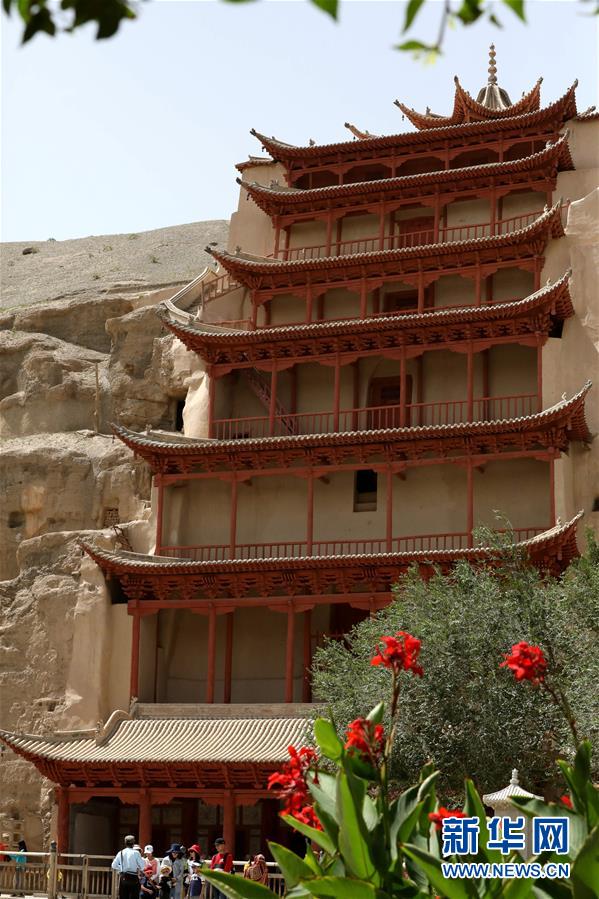 这是莫高窟标志性建筑九层楼(8月20日摄)。新华社记者 郭刚 摄