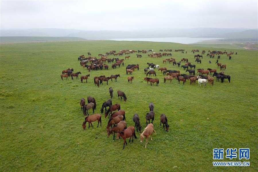 这是在中农发山丹马场有限责任公司一场拍摄的马群(8月21日无人机拍摄)。 新华社记者 范培珅 摄