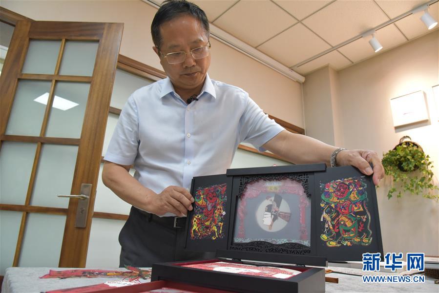 在读者出版集团有限公司,公司副总经理富康年展示手工书《玩皮影》(8月22日摄)。 新华社记者 张睿 摄