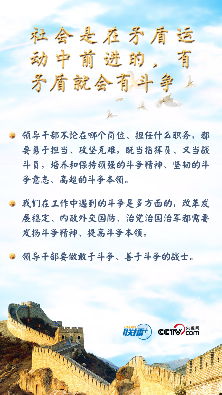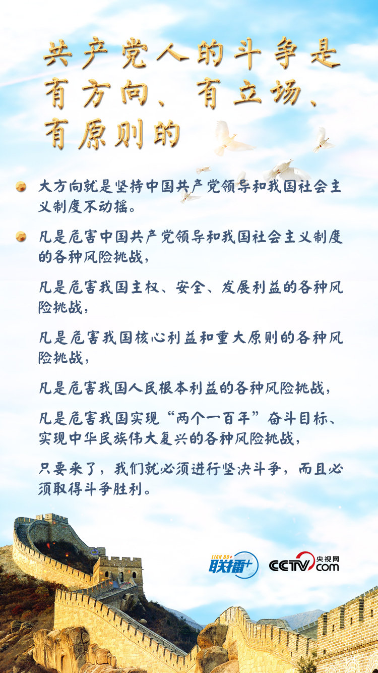 联播+ “我们共产党人的斗争,从来都是奔着矛盾问题、风险挑战去的。”