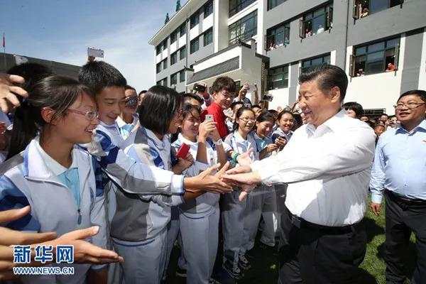 2016年9月9日,习近平总书记看望慰问北京市八一学校的教师学生代表。(新华社)