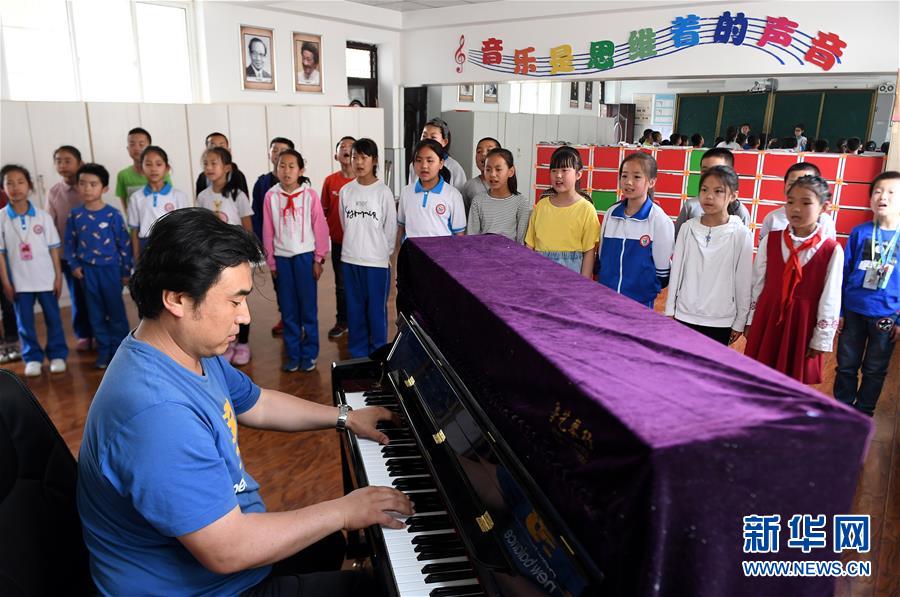 陕西省延安市杨家岭福州希望小学合唱社团的学生在合唱(4月24日摄)。 新华社记者 刘潇 摄