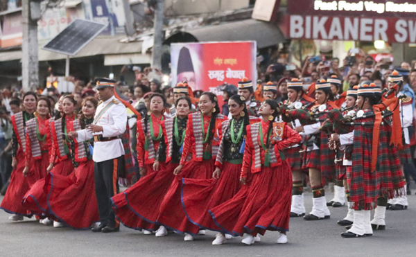 10月12日,尼泊尔民众载歌载舞热烈欢迎中国国家主席习近平来访。新华社记者丁林摄