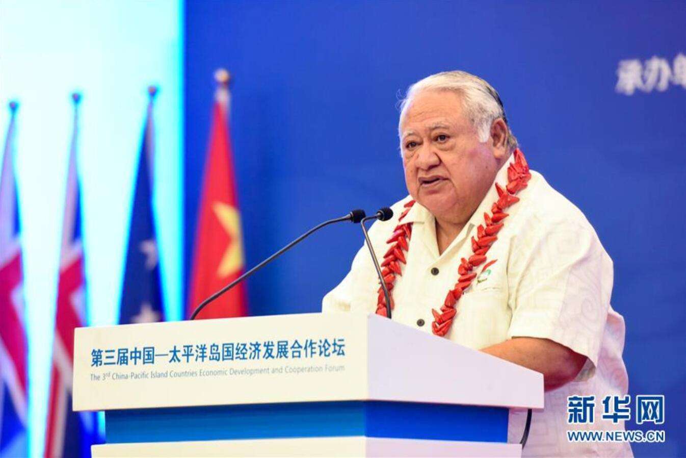 10月21日,在萨摩亚首都阿皮亚,萨摩亚总理图伊拉埃帕在开幕式上发表讲话。 第三届中国-太平洋岛国经济发展合作论坛21日在萨摩亚首都阿皮亚举行。 新华社记者 郭磊 摄