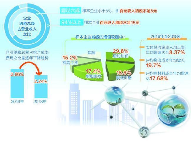 中国财政科学研究院公共收入研究中心主任张学诞介绍,“调查显示,市场主体将节省下来的税费资金用于扩大投资、增加研发、雇佣人员等。以增值税为例,样本企业减缴税额29.8%用于增加利润,18.9%用于降低价格,17.4%用于增加研发,15.2%用于提高工资等”。