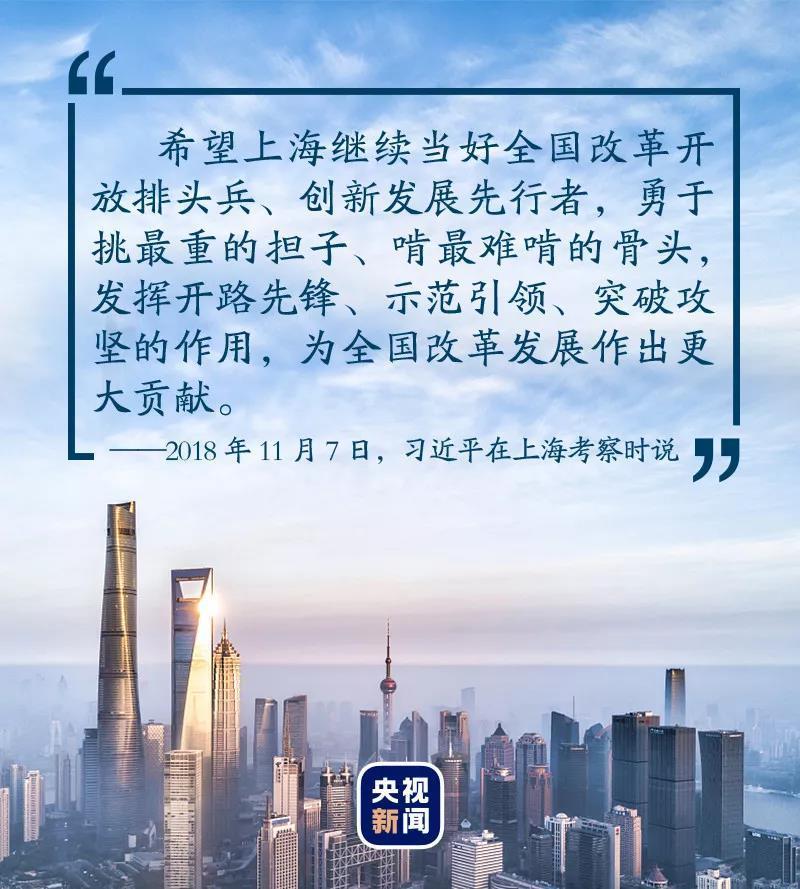 2018年11月6日至7日,习近平总书记出席首届中国国际进口博览会后,在上海考察。他对这座自己曾工作过的城市提出了新期许——更好为全国改革发展大局服务,推动经济高质量发展,推动改革开放向纵深发展,深化社会治理创新,提高党的建设质量和水平。