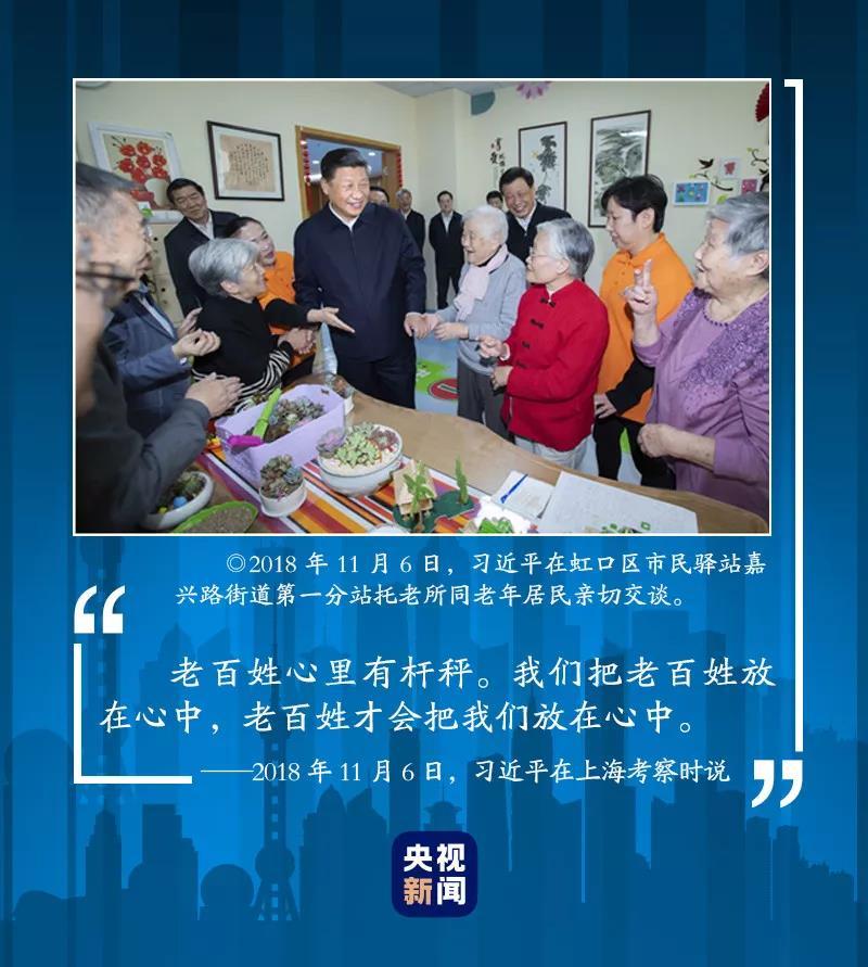 虹口区是上海老龄化程度最高的区域,全区60岁以上老人比例近40%。2018年11月6日,在虹口区市民驿站嘉兴路街道第一分站,习近平总书记看望了托老所的老人。习近平指出,我国已经进入老龄社会,让老年人老有所养、生活幸福、健康长寿是我们的共同愿望。党中央高度重视养老服务工作,要把政策落实到位,惠及更多老年人。