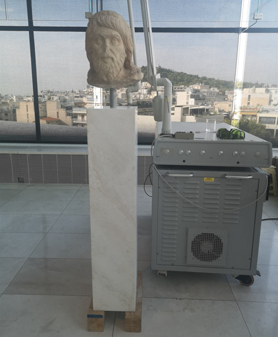 希腊方面向习主席介绍了激光文物修护技术,图为相关设备。新华社记者郝薇薇摄