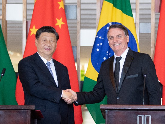 ▲当地时间11月13日,国家主席习近平在巴西利亚同巴西总统博索纳罗会谈。新华社记者李学仁摄