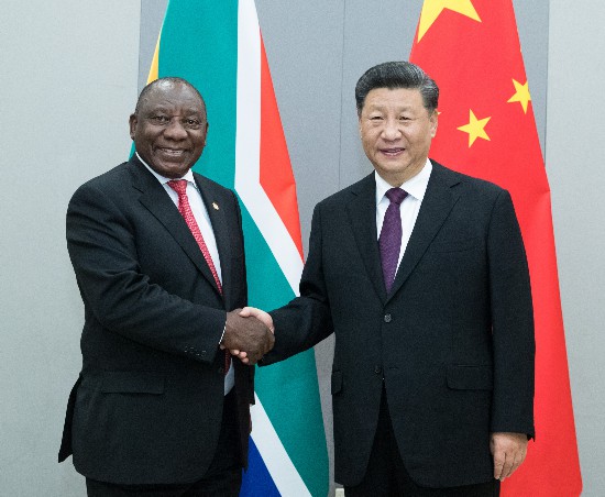 ▲当地时间11月14日,国家主席习近平在巴西利亚会见南非总统拉马福萨。新华社记者王晔摄